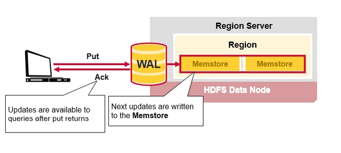 WAL: Write Ahead Log is a file on the distributed file system. The WAL is used to store new data that hasn't yet been persisted to permanent storage; it is used for recovery in the case of failure.